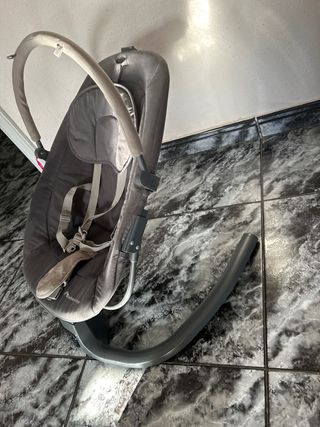 Hamaca para bebé de la marca Jane en color gris. Es plegable y fácil de transportar. - Estructura metálica. - Asiento acolchado. - Arnés de seguridad. ARCO DE PLASTICO PARA QUE JUEGUE EL BEBE ROTO SOLO FALTA ESA PARTE