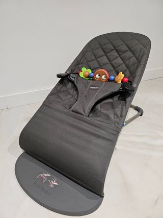 Hamaca para bebé de la marca BabyBjorn en color gris. Su diseño ergonómico ofrece comodidad. - Tejido acolchado y suave. - Estructura metálica. - Arnés de seguridad.