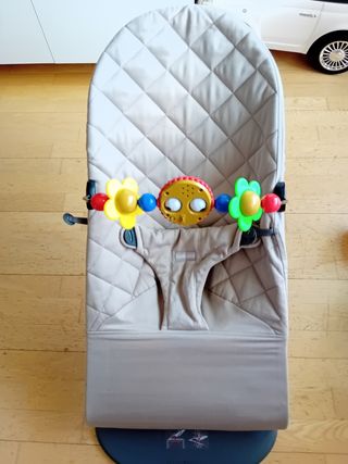 Preciosa hamaca Babybjörn en color beige, perfecta para el bebé. Está en muy buen estado y lista para usar. - Incluye arco de juegos con juguetes. - Tejido acolchado de alta calidad. - Diseño ergonómico y cómodo.