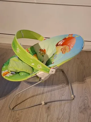 Preciosa hamaca mecedora para bebé, en perfecto estado . - Hasta 18 Kg - Ideal para que el bebé se relaje y se duerma. 3 posturas reclinables. - Incluye móvil musical con 12 melodías y 4 sonidos de la naturaleza. - Arco de juego con 2 peluches. - Pilas incluidas.