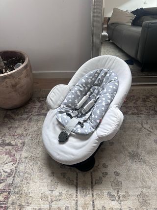usado solo unas pocas veces Una hamaca con suave movimiento para acunar Parte del sistema de asientos de Stokke® Steps™ Se puede usar por separado o montada en la trona El cojín para recién nacidos provee soporte y comodidad al bebé Variedad de posiciones para ajustar la posición del asiento según el peso de tu bebé La hamaca se puede plegar para guardarla fácilmente y facilitar su traslado