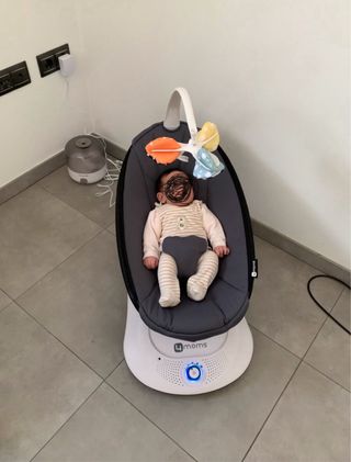 Hamaca para bebé en color gris, con un diseño acolchado y suave. - Tejido principal gris. - Varios niveles de giro. - Bluetooth para ponerle música desde el móvil. Usado 3 veces durante muy poco rato. Prácticamente nuevo.
