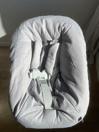 Hamaca Stokke para bebé, ideal para los más pequeños. Su diseño ergonómico ofrece comodidad y seguridad. - Color gris - Acolchado suave - Arnés de seguridad - Soporte para móvil Ideal para tener al bebé a tu altura. Se entrega en embalaje original.