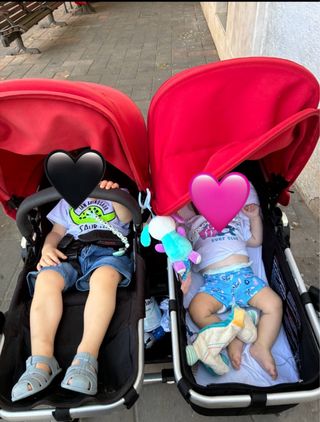 Carro gemelar Bugaboo. - Ideal para dos bebés. - Diseño funcional y cómodo. incluye dos sillas y un capazo , también incluye cesta por si se quiere poner solo de uno ,en buen estado , una de las capotas ha perdido algo de color y la cremallera no termina de cerrar pero cumple su función ya q la puedes poner normal o extra . Tiene todavía mucha vida de uso .se entrega limpio. algo negociable