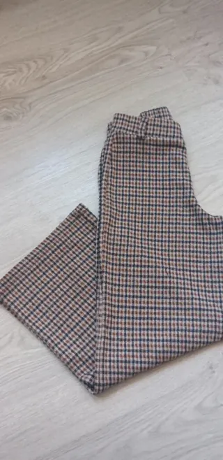 Pantalón de cuadros de Zara para niña. - Talla 7. - Diseño de cuadros marrones y azules.