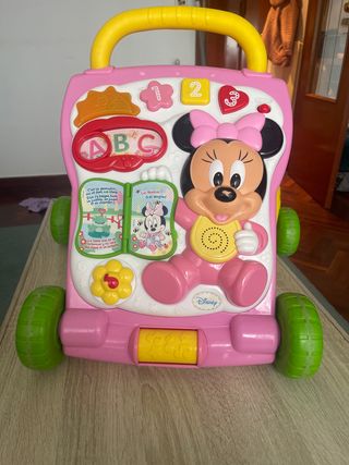Andador musical con diseño de Minnie Mouse de Disney. Ideal para los más pequeños. - Panel interactivo con luces y sonidos. - Incluye libro con actividades. - Ruedas para facilitar el movimiento.
