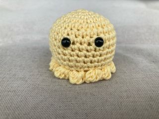 Adorable pulpo tejido a mano con la técnica amigurumi. - Color amarillo. - Hecho a crochet. - Ojos de seguridad negros.