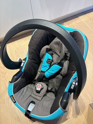 Silla de coche para bebé marca BeSafe, modelo Izi Go, grupo 0. - Color gris y azul. - Incluye arnés de seguridad de 5 puntos. - Asa de transporte. - Capota. - Adaptadores para carrito (no incluidos). - Sin base isofix