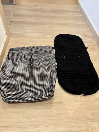 Saco de invierno para capazo. - Diseño a cuadros blanco y negro. - Forro interior negro.