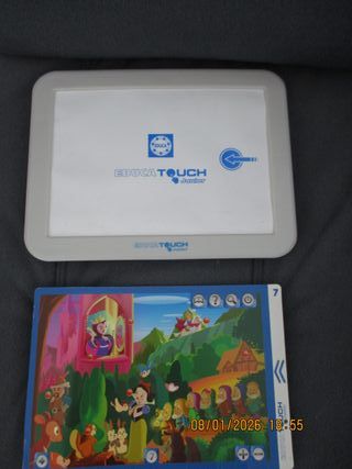 Dispositivo Educatouch Junior para aprender y jugar con cuentos.4 cuentos completos, 4 actividades relacionadas con cada cuento, 4 juegos didácticos. Música y canciones. Pantalla táctil. En su caja original. Envío sólo mediante correos.