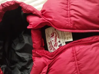 Chaleco acolchado de Zara para niños de 2 a 3 años. Es de color rojo y tiene capucha. - Cierre de cremallera. - Dos bolsillos delanteros con botón. - Forro interior negro.