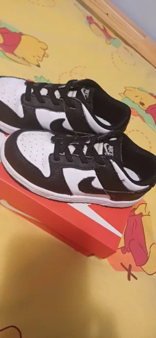 Zapatillas deportivas Nike para niño, talla 27. Diseño clásico en blanco y negro. Tienen muy poco uso Porque le quedaron pequeñas enseguida....y están súper bien cuidadas tienen su caja original - Cierre con cordones. - Logo de Nike en el lateral. - Suela de goma.