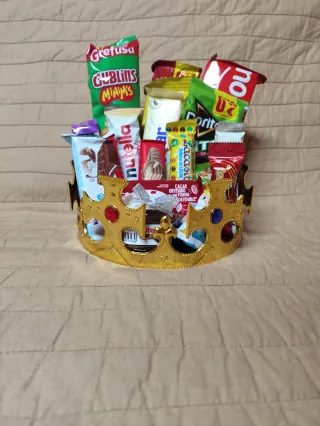 Corona de los Reyes Magos, ideal para regalar o para una fiesta. - Decorada con detalles dorados y gemas de colores.