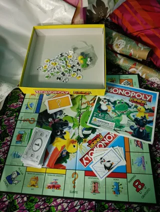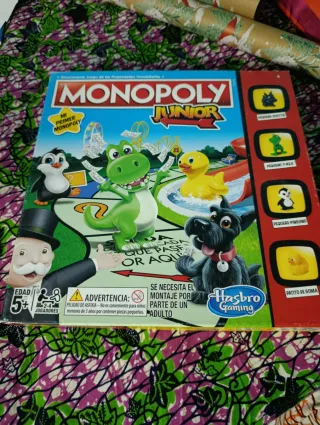 Juego de mesa Monopoly Junior, perfecto para los más pequeños. Incluye todos los componentes para empezar a jugar. - Edición Mi Primer Monopoly. - Personajes: dinosaurio, pingüino, patito de goma y perro. - Incluye billetes de juego. - Para 2-4 jugadores. - Edad recomendada: 5+ años. Es ideal para los más pequeños de la casa, que se van iniciando en el manejo de billetes para luego pasar a jugar al de mayores Está como nuevo, usado un par de veces, no le falta nada, tiene instrucciones.