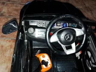 Coche eléctrico infantil con diseño deportivo SE LE TIENE QUE CAMBIAR LA BATERÍA - Color negro - Detalles AMG. - Volante y asiento. - Radio MP3 / bluetooth - Luces.