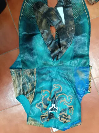 Disfraz inspirado los Descendientes. Talla 9-10 - Incluye top con diseño de dragón y chaqueta. - Pantalones a juego. - Puños morados. - Detalles de tachuelas y estampado.