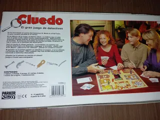 Juego de mesa Cluedo, El gran juego de detectives. - Caja del juego. - Tablero. - Personajes. - Armas. - Tarjetas.