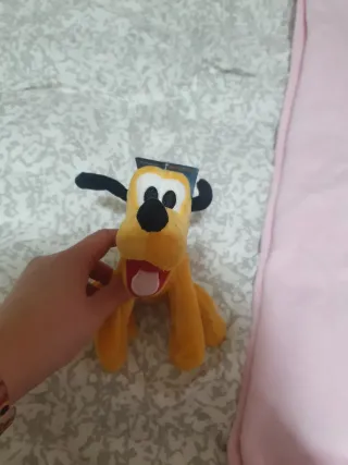 Peluche del personaje Pluto de Disney. Es un peluche suave y tierno. - Color amarillo. - Orejas negras. - Boca abierta con lengua rosa.