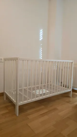 Se vende cuna Gulliver Ikea en buen estado, ideal para el descanso del bebé. Incluye colchón de cuna bebé HR Morfeo (marca Cool dreams) y protector. - Cuna modelo Gulliver blanca. - Colchón para cuna. (Usado siempre con el protector) - Protector de colchón. Nota: En la últimas imágenes se muestran unos detalles por el uso. Ya esta desarmada y guardada con todas sus piezas completas e instrucciones de armado.