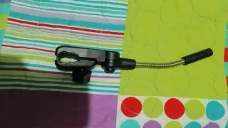 Este es un soporte universal diseñado para sujetar sombrillas o paraguas. Tanto en cochecitos de bebes como en andadores adultos - Mecanismo de sujeción tipo pinza. - Brazo flexible con acabado metálico.