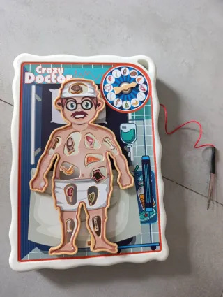 Divertido juego de mesa Crazy Doctor para niños. Ideal para aprender sobre el cuerpo humano de forma entretenida. - Tablero con figura de paciente y órganos extraíbles. - Incluye accesorios y un selector de dolencias con imágenes. - Diseño colorido y atractivo.