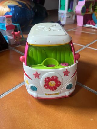 Autocaravana de juguete de la marca Pinipon. Ideal para coleccionistas o para jugar. - Diseño colorido con detalles de flores y estrellas. - Interior con asientos verdes y accesorios. - Puertas laterales y techo abatible.