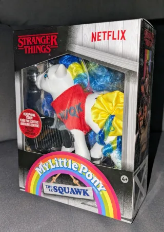My Little Pony The Le Squawk de la colaboración con Stranger Things y Netflix. - Incluye peine con diseño de auriculares. - Nuevo sin abrir. - Nunca expuesto ni sacado de su caja. - Hogar LIBRE DE HUMO. NO RESPONDO A REGATEO, no marear. Puedes obtener un descuento si haces lotes.