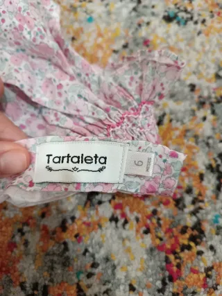 Conjunto de bebé de la marca Tartaleta. - Talla 6 meses. - Diseño floral en tonos rosas y verdes.