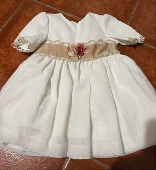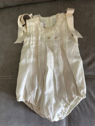 Precioso pelele de ceremonia para bebé, ideal para ocasiones especiales. talla 3-6 - Color blanco roto. - Detalle de puntilla y lazos. - Adornado con pequeños botones. - Tejido ligero y vaporoso.