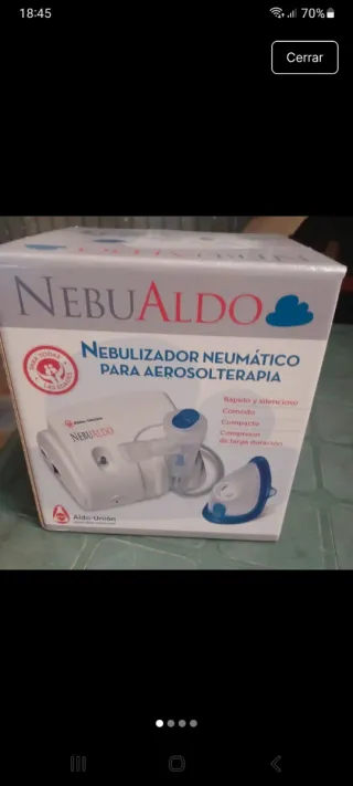 Nebulizador neumático de la marca Nebualdo, ideal para aerosolterapia. Diseñado para ser rápido, silencioso, cómodo y compacto. - Incluye compresor de larga duración. - Apto para todas las edades.
