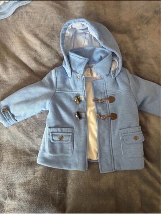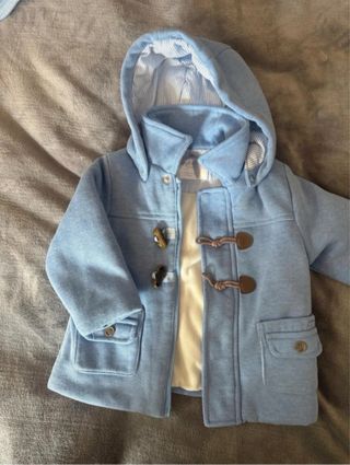 Trenca de punto azul de Mayoral. Ideal para los días más frescos. - Cierre con cremallera y con botones de madera y cordón. - Bolsillos delanteros con solapa y botón. - Puños abotonados