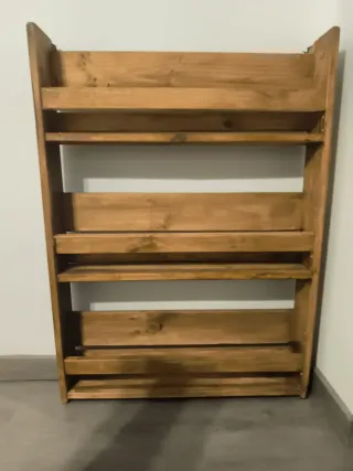 Estantería de madera estilo Montessori, ideal para organizar libros. Comprada en muebles Lufe. - Diseño de madera natural. - Montaje sencillo en pared.