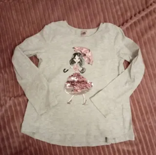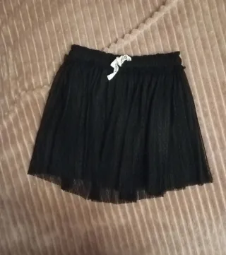 Falda de tul negra para niña de 6 años. Es una prenda con un diseño ligero y con un pequeño lazo decorativo en la cintura. Camiseta decorada en pecho con lentejuelas. - Color: Negro y gris. - Talla: 6 años.