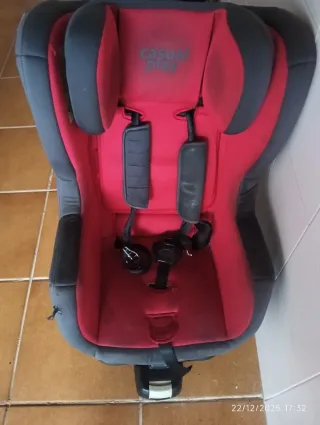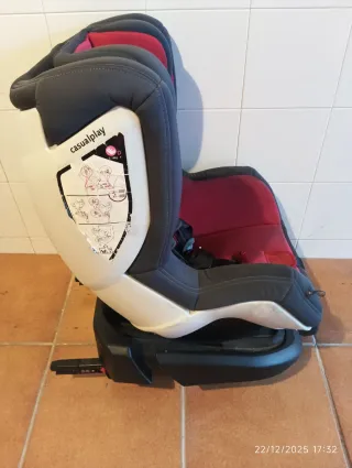 Silla de coche de la marca Casualplay en color rojo y gris. Cuenta con un sistema de arnés de seguridad. - Diseño ergonómico. - Acolchado en los laterales y reposacabezas. - Funda extraíble para lavado.