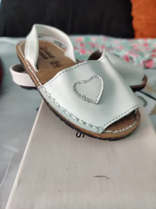 Preciosas menorquinas para niña en color blanco, perfectas para cualquier ocasión. - Talla 24 - Detalle de corazón cosido en la pala. - Fabricadas en piel. - Suela de piel.