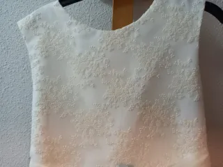 Vestido blanco para niña, ideal para ceremonias. - Cuerpo superior con detalles de encaje. - Cinturón fino con detalle floral y pedrería. - Falda vaporosa de organza. - Solo tiene una puesta.