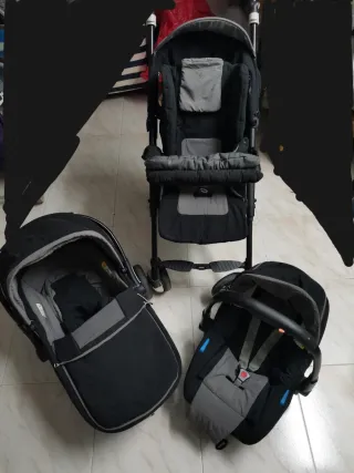 Conjunto de cochecito Jane Solo: - Silla de paseo. - Capazo. - Silla de coche (Grupo 0+). - Regalo saco y algunas piezas textiles de repuesto de otra silla (reposacabezas, reposabrazos, tela silla paseo)