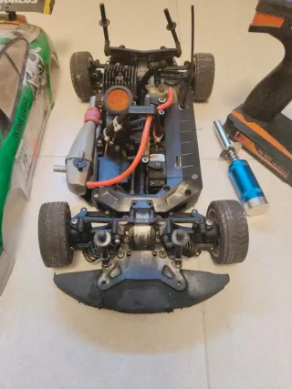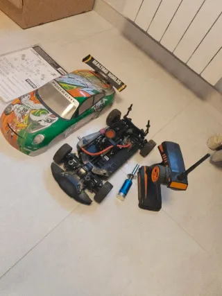 Coche de radiocontrol a gasolina con carrocería de Porsche. - Incluye mando a distancia. - Manual de instrucciones. - Carrocería con diseño deportivo. - Chispometro con sistema precalentamiento para arranque en frío. Necesita puesta a punto 3 años parado No negociable. me costó 495€