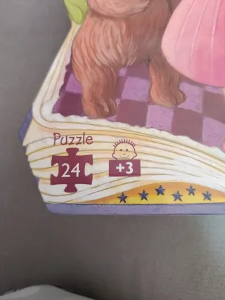 Puzzle de la marca Djeco con una ilustración de tres osos y una niña vestida de rosa. - Diseño con forma de libro abierto. - Incluye 24 piezas. - Recomendado para mayores de 3 años.