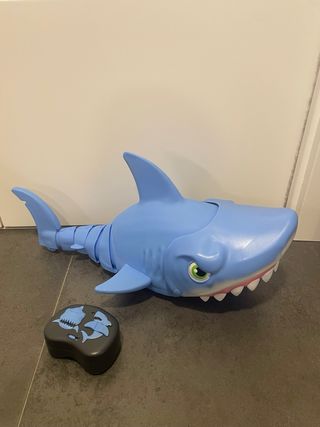 Divertido tiburón teledirigido Megamandíbulas. - Diseño de tiburón en color azul. - Incluye mando a distancia. - Funciona perfectamente. - Pilas no incluidas.