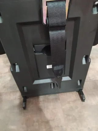 Silla de coche negra con sistema de sujeción. No envío.Entrega en mano - Correa de seguridad negra. - Base de plástico resistente.