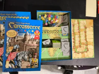 Juego de mesa Carcassonne, ganador del premio Juego del Año en 2001. Incluye las reglas revisadas. - Caja del juego Carcassonne. - Componentes del juego. - Tablero de juego.