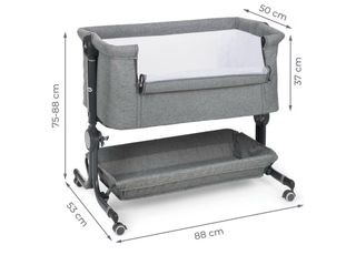 Minicuna en perfecto estado, usada solo un par de veces. Ideal para los primeros meses del bebé. - Color gris jaspeado. - Estructura metálica. - Ruedas para fácil movilidad.