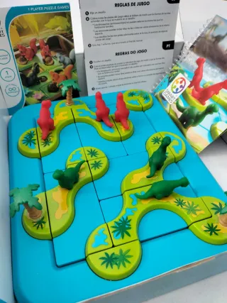 Juego de lógica tipo puzzle para un jugador. Objetivo: Colocar las islas en el tablero para separar a los dinosaurios carnívoros rojos de los herbívoros verdes. Desafíos: Incluye 80 retos con niveles de dificultad desde fácil hasta experto. Edad recomendada: Apto para mayores de 6 años. Habilidades: Desarrolla la planificación, la percepción espacial y la resolución de problemas. - Incluye manual de reglas en español y portugués.