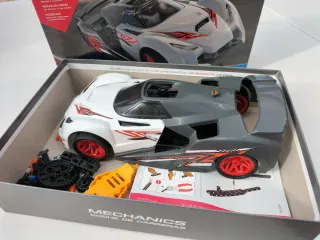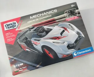Kit de construcción de coche de carreras de la línea Mechanics de Clementoni. set educativo STEM (Ciencia, Tecnología, Ingeniería y Matemáticas) diseñado para niños a partir de 8 años. El kit permite construir un modelo detallado de un coche de carreras. Objetivo Educativo: Fomenta el ingenio, el diseño y las habilidades manuales al permitir a los niños formular hipótesis y experimentar con modelos mecánicos.