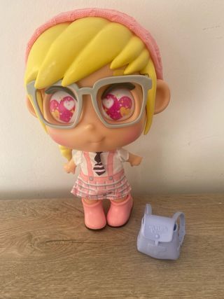¡Como nueva! Vendo muñeca Trotties Sophie, la viajera de la colección que ama París. Está en perfecto estado y muy bien cuidada. Lo más especial: • Ojos mágicos: Al presionar su cabeza, sus ojos cambian hasta en 3 expresiones diferentes (corazones, estrellas y flores). • Accesorios incluidos: Viene con su outfit completo (vestido preppy y corbata), gafas de montura gris, mochila lavanda y su boina rosa. • Tamaño: 25 cm de altura, ideal para jugar