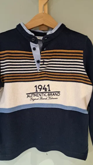 Polo de manga larga de la marca Mayoral. Tejido de jersey. Caliente. - Diseño a rayas en la parte superior. - Detalle de número '1941' y texto 'Authentic Brand'. - Cuello con botones.