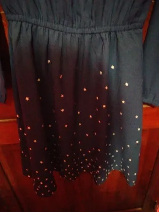Vestido de niña en buen estado, ideal para cualquier ocasión. - Color azul marino. - Estampado de estrellas blancas. - Manga larga. - Cintura elástica.