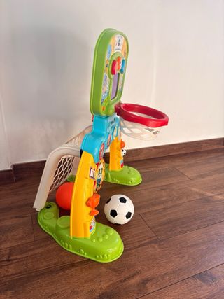 Divertido juguete Vtech 2 en 1 para que los más pequeños disfruten del baloncesto y el fútbol. Ideal para desarrollar la coordinación. - Incluye dos pelotas: una de baloncesto y una de fútbol. - Base estable y colorida. - Diseñado para el juego activo.