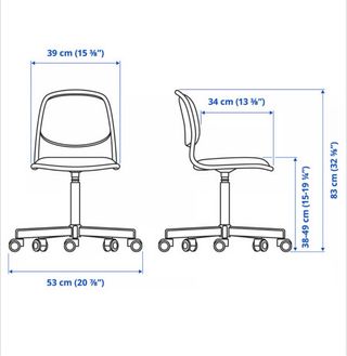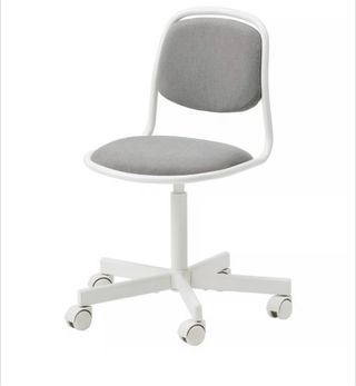 Silla de IKEA Örfjäll para escritorio de niños. Medidas: 83cm de alto por 43cm de ancho. Color: Gris claro